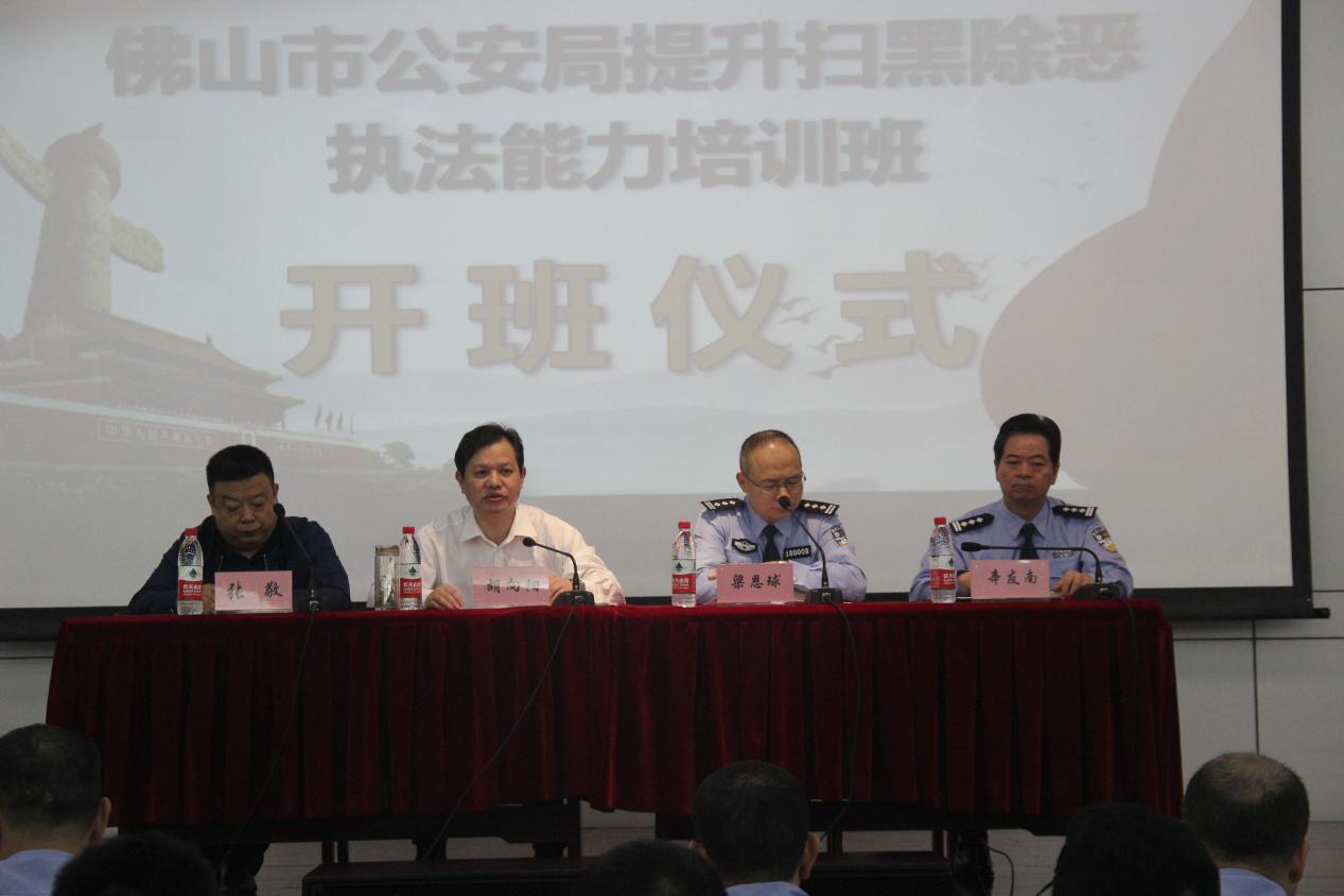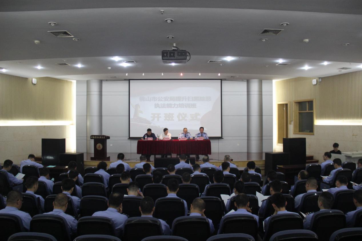 (通讯员:方子典、代锦昭)5月22日上午8:30,佛山市公安局提升扫黑除恶执法能力培训班于我校图书馆一楼报告厅顺利开班。我院院长胡向阳同志,佛山市公安局党委委员、副局长梁恩球同志,佛山市公安局法制支队支队长辛友南同志以及佛山市公安局同各分局共60余名学院出席了本次开班仪式,本次开班仪式由我院张敬副教授主持。