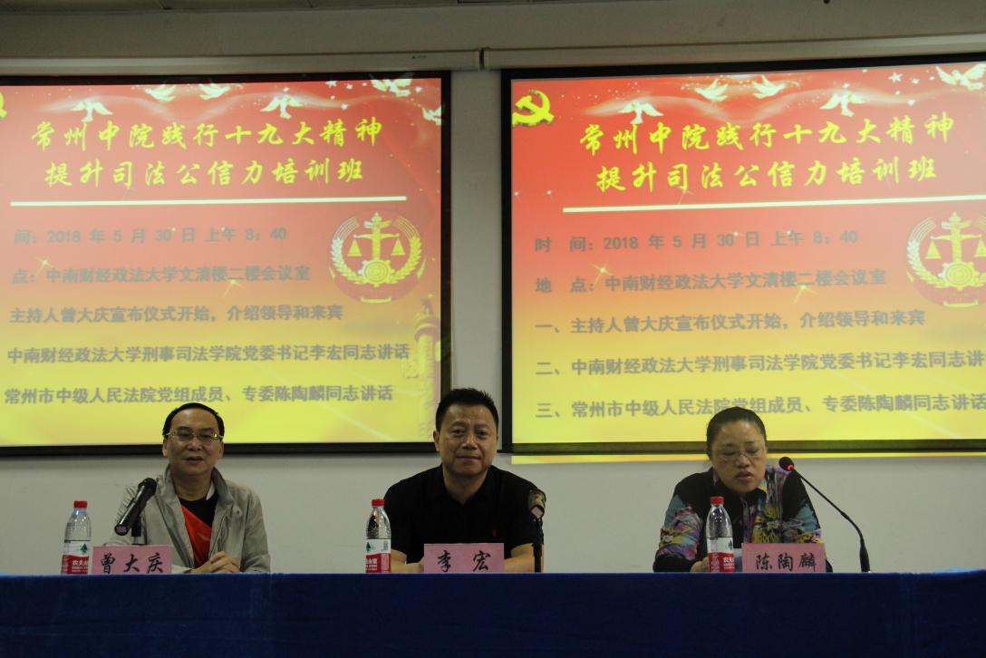 5月30日,由我院主办的常州市中级人民法院践行十九大精神,提高司法公信力培训班开班仪式在文清楼二楼会议室举行。