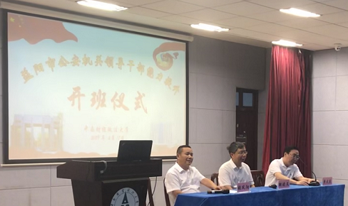 2019年6月17日至21日,湖南益阳市公安机关领导干部能力提升研修班在中南财经政法大学刑事司法学院成功举办,本次培训班是益阳市公安局与中南财经政法大学签订刑事司法卓越人才培训基地共建协议以来的第二次培训,益阳市公安系统共计68位学员参训。益阳市公安局党组成员、副局长张凤阳,中南财经政法大学副校长邹进文教授出席开班仪式。院培训中心主任曾大庆老师主持了开班典礼。