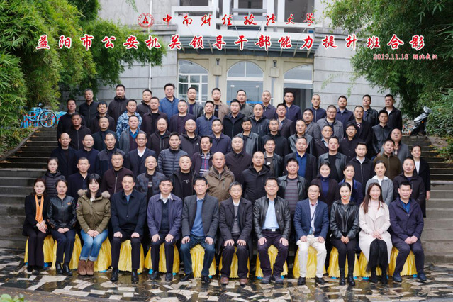 11月18日上午,2019年益阳市公安机关领导干部能力提升研修班(第二期)在文澜楼309教室正式开班。中南财经政法大学副校长邹进文,益阳市公安局党组副书记、副局长郭陆武,中南财经政法大学刑事司法学院党委书记李宏出席开班仪式。益阳市各分局、县(市)局,局属各单位的68名领导干部及中层骨干参加培训。本次开班典礼由刑事司法学院培训中心主任曾大庆主持。