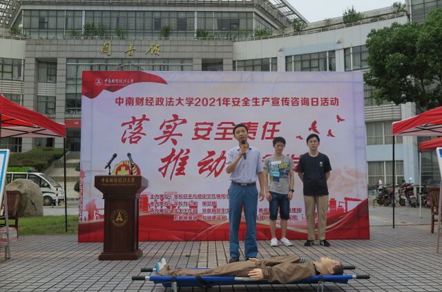新闻网讯(学生记者王峻哲)为深入学习贯彻习近平总书记在党史学习教育动员大会上的重要讲话精神,结合专业、紧扣育人,努力做到学党史、悟思想、办实事、开新局。6月16日上午,在南湖校区五羊广场,刑事司法学院党委书记张志刚、党员副教授周鑫与本院学生代表,参加了学校“落实安全责任,推动安全发展”2021年安全生产宣传咨询日活动,向现场师生讲解、演示警务急救相关知识与有关技能,取得良好效果。