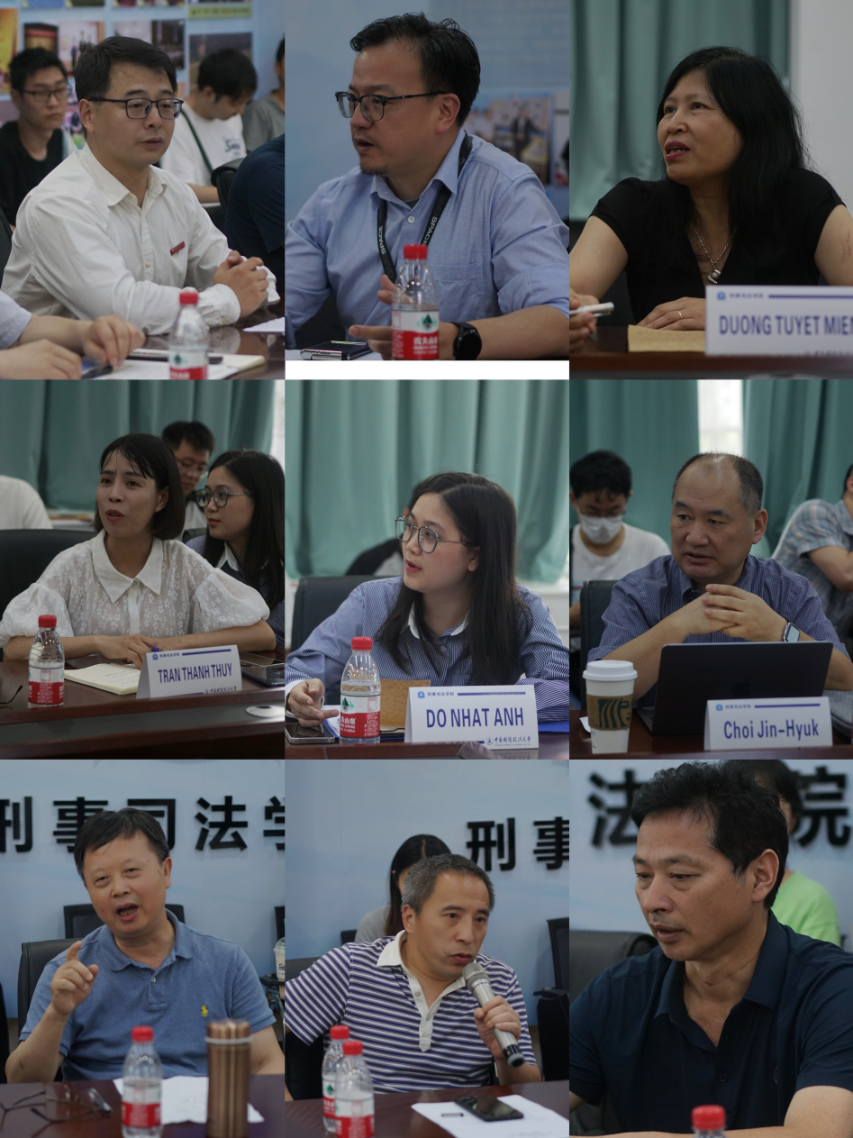中南财经政法大学刑事司法学院党委张志刚书记、副院长郭泽强教授、越南法官学院副院长杨雪棉(DuongTuyetMien)、越南法官学院杜日映老师(DoNhatAnh)、越南外贸大学法律系刑法主任陈清水教授(TRANTHANHTHUY);韩国警察大学崔真革(ChoiJin-Hyuk)教授、普华永道高级经理(韩国)李信祝(LeeShinHyung)以及我院博士生导师夏勇教授、王良顺教授、周详教授、程红教授、魏汉涛教授、李正新副教授、李淑兰老师等等及我院博士生、硕士生共同参加,本次大会由学院党委委员周凌教授主持。
