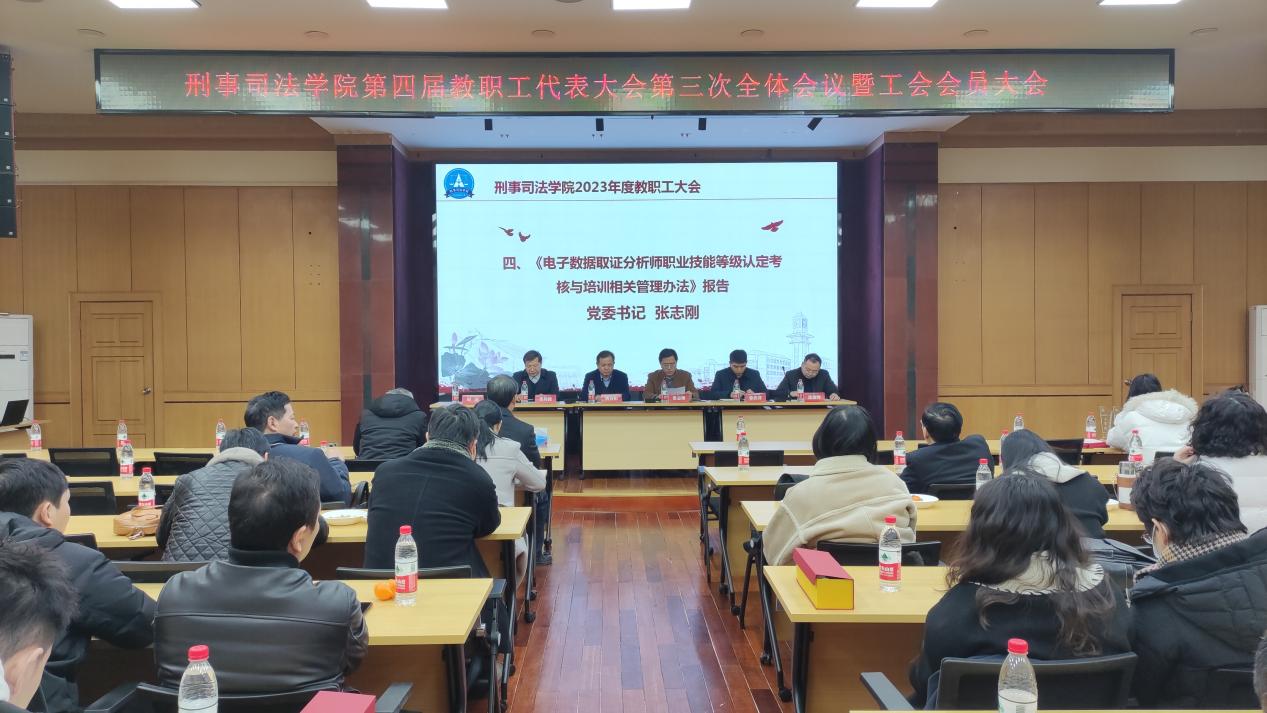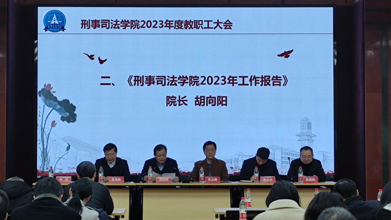新闻网讯(通讯员 柯希鹏)1月11日下午,刑事司法学院2023年度全体教职工大会暨工会会员大会在文潭楼四楼报告厅举行。会议由刑事司法学院党委书记张志刚主持,学院全体教职工参加了会议。