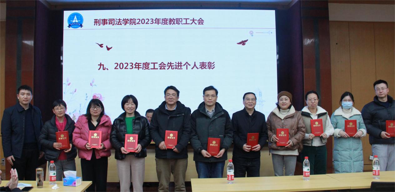 大会审议并通过了《刑事司法学院2023年工作报告》《刑事司法学院2023年财务工作报告》《刑事司法学院2023年工会工作报告》和《刑事司法学院电子数据取证分析师职业技能等级认定考核与培训相关管理办法》《刑事司法学院社会服务与办学收入基本工作量酬金等分配管理办法》等文件,举行了学院2023年度青年教师讲课比赛获奖教师和2023年度工会先进个人代表表彰仪式。