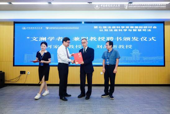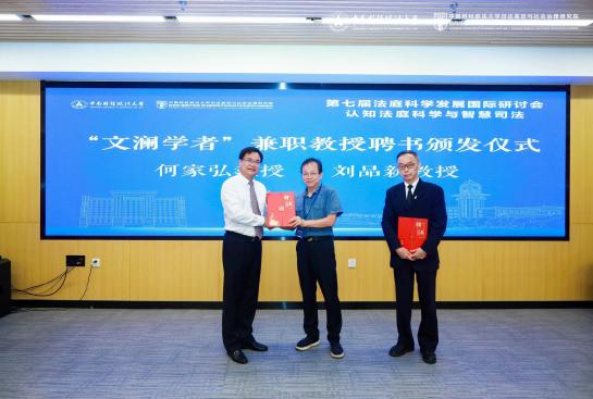 开幕式最后,举行了聘任中国人民大学何家弘教授和刘品新教授为我校“文澜学者”兼职教授的聘书颁发仪式。随后,中南财经政法大学刑事司法学院院长胡向阳教授与智器云南京信息科技有限公司总经理王海波共同为“AI情报分析联合实验室”揭牌并签署战略合作协议。