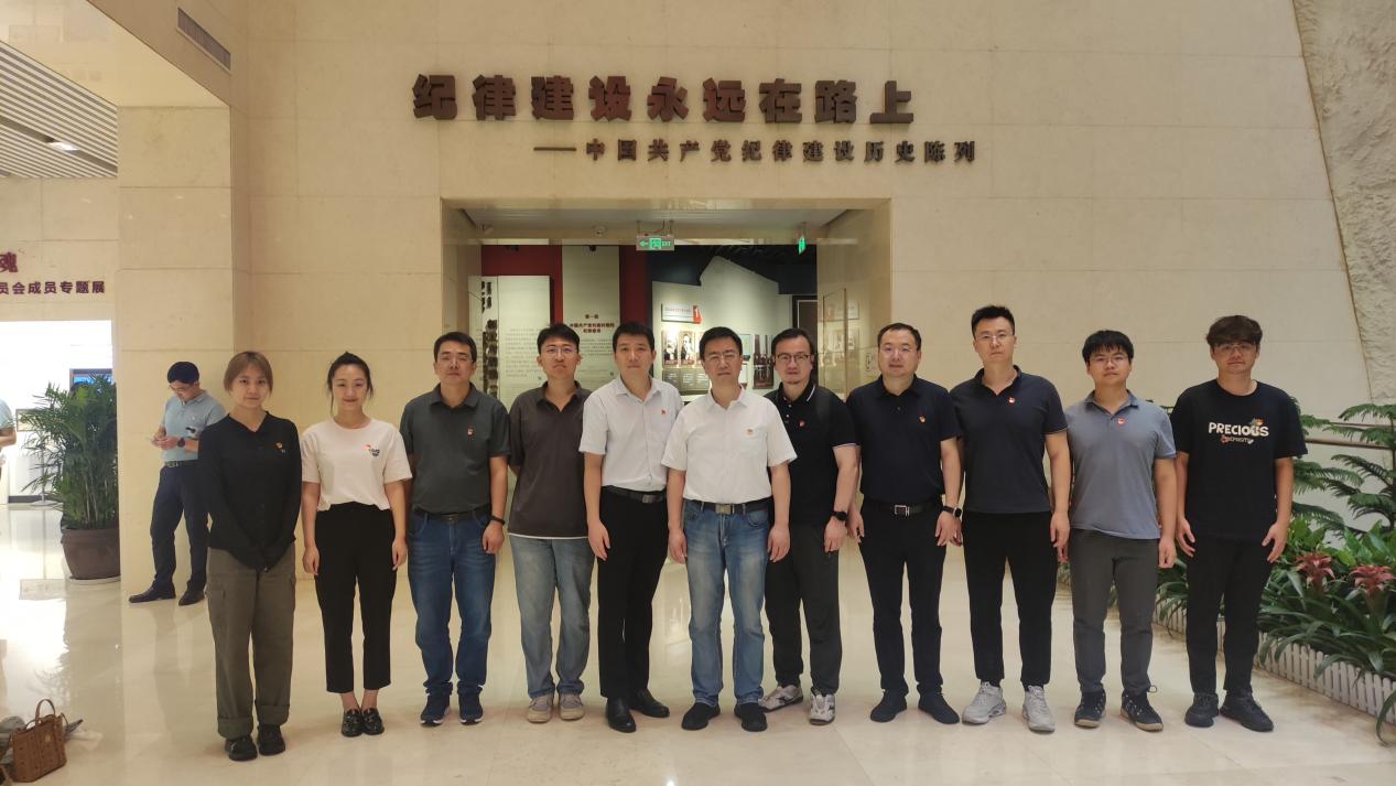 活动中,党员们首先参观了中国共产党纪律建设历史陈列展通过详细了解了党的纪律建设的发展历程、重要成果及典型案例,进一步增强了纪律意识和规矩意识。在陈列展最后,全体党员在庄严的党旗下,面向党徽,由党委副书记徐庆祥领誓,共同重温入党誓词。铿锵有力的誓言在纪念馆内回荡,不仅是对党的忠诚与承诺的重申,更是对自我党性修养的又一次深刻洗礼。
