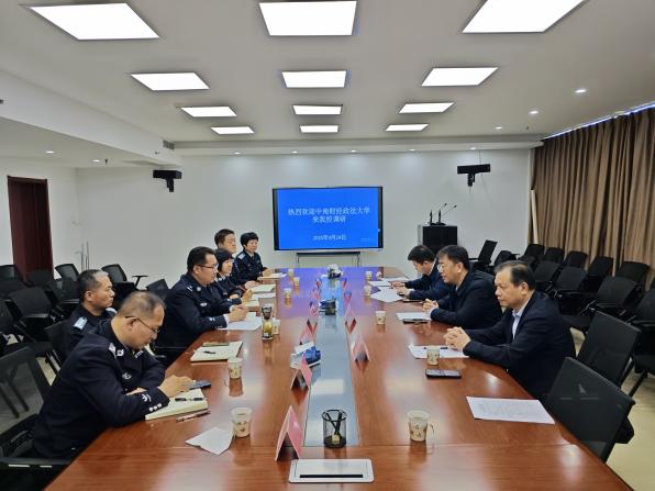 4月24日上午,调研组赴中央司法警官学院调研。中央司法警官学院人事处处长孙海杰、人事处副处长王揆鹏、监狱学学院院长王雪峰、法学院院长赵亮等与调研组围绕人才培养、优秀毕业生推荐、院院合作等进行了深入交流。