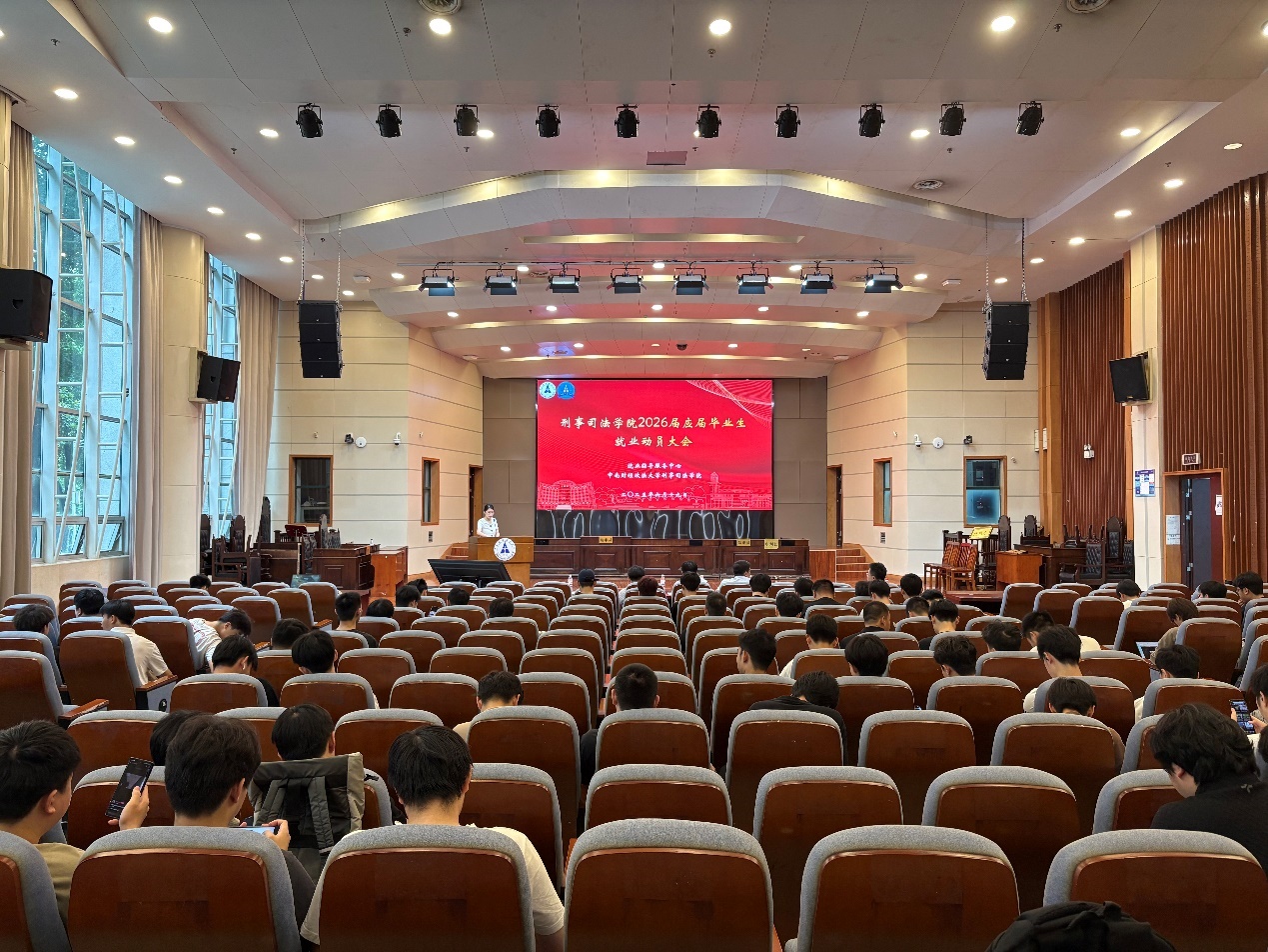 新闻网讯(学生通讯员 朱彬彬)为贯彻落实学校关于就业工作部署要求,进一步加强毕业生就业指导服务工作力度,6月19日上午,刑事司法学院在文泰楼模拟法庭一召开2026届应届毕业生就业动员大会。刑事司法学院党委书记张志刚、就业指导服务中心副主任贾晓、刑事司法学院党委副书记徐庆祥、2026届毕业生辅导员赵轶以及2026届全体本科毕业生参会。会议由赵轶主持。