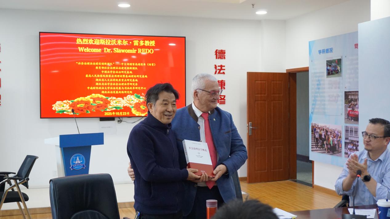 讲座伊始,徐汉明教授、周凌教授对雷多教授的到来表示热烈欢迎,并与雷多教授互赠礼物。