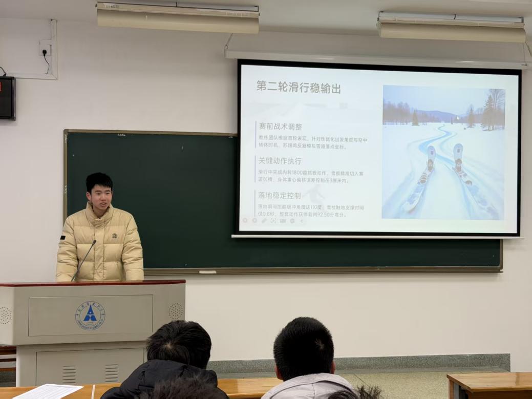 榜样的力量催人奋进。活动中,支部共同走进苏翊鸣的冰雪追梦路,从儿时的刻苦磨砺,到2022年北京冬奥会成为中国最年轻的冬奥冠军之一,再到米兰冬奥会赛场上完成1980度抓板高难度动作、接连斩获高分的惊艳表现。教练团队的专业指导、苏翊鸣对动作细节的极致把控,也让大家深刻体会到专业与专注的重要性。