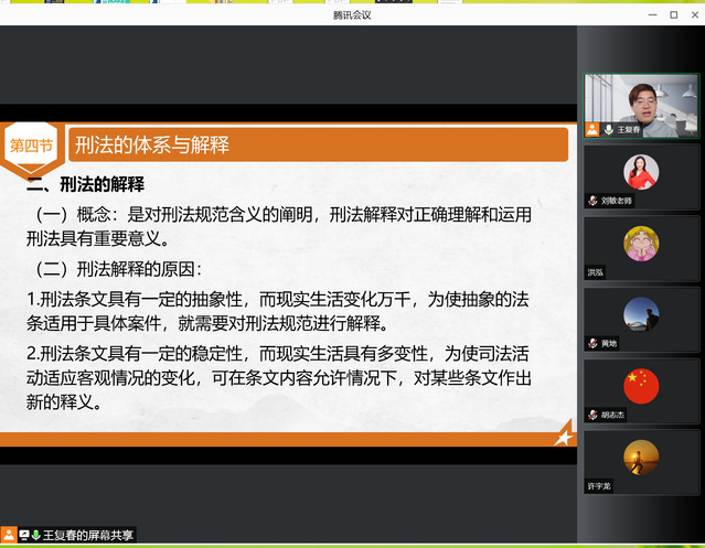 开班仪式结束后,我院刑法学研究生导师王复春博士为学员们开启了研修班第一课《刑法学》。