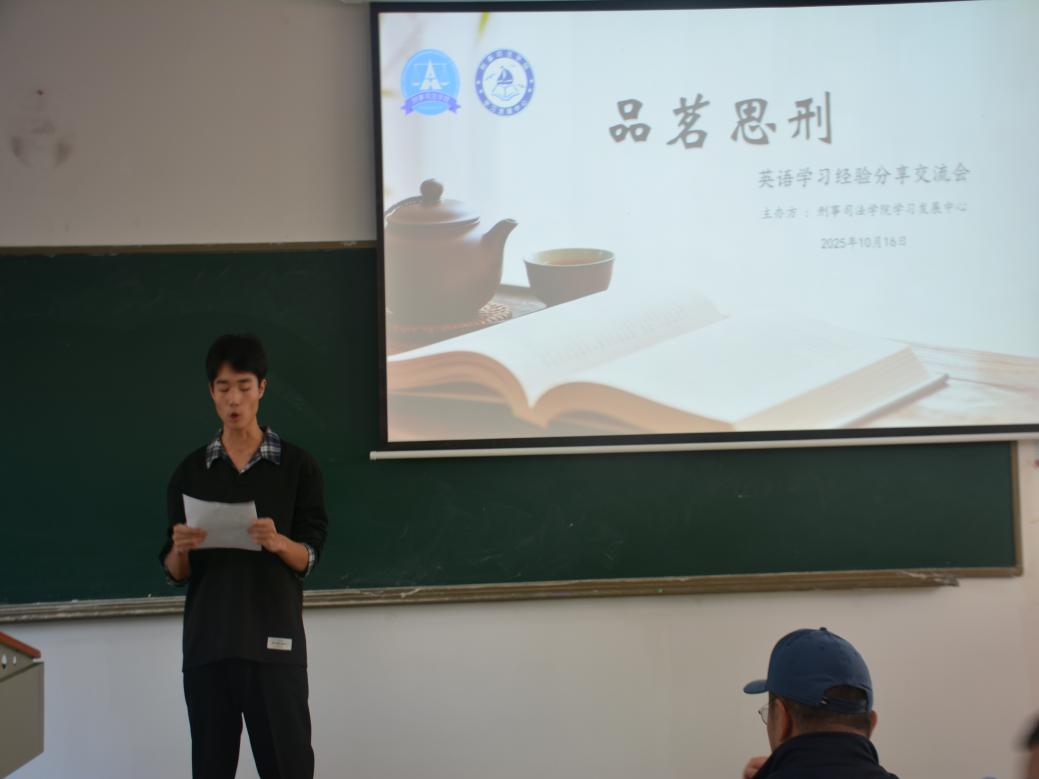 新闻网讯(学生通讯员史昀昊 杨翊 王璐通)为助力我院学子高效备考四六级,快速适应大学英语学习节奏,10月23日下午,刑事司法学院学习发展中心于文波楼举行了“‘英’彩中南,品茗思刑”英语学习经验分享会,特别邀请了大学英语学习规划讲师刘梦耘和我院2024级本科生汪振洋为大家进行了备考指导和专业分享。