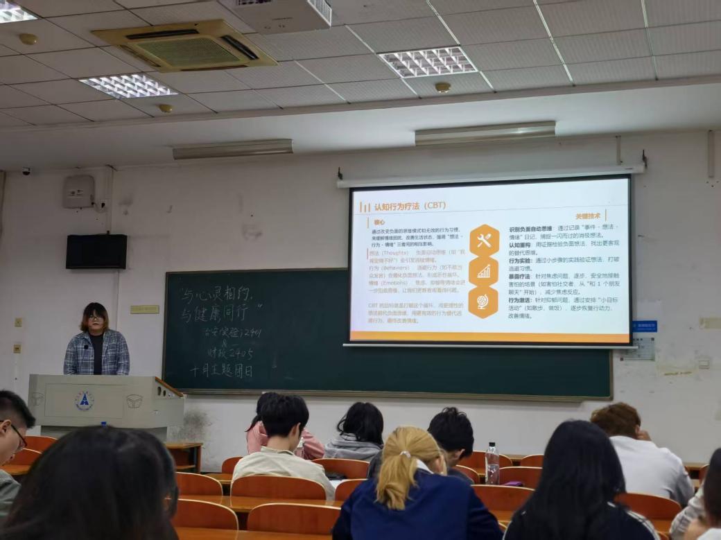 新闻网讯(学生通讯员 吴爽 李琰)10月24日晚,由财税2405班与治安2401班联合举办的“与心灵相约,与健康同行”主题团日活动在文波楼209教室顺利举行。本次活动由财税2405班团支书吴爽主讲,治安2401班团支书李琰负责活动联络与现场协调。两班同学齐聚一堂,围绕心理健康主题展开深入交流与互动。