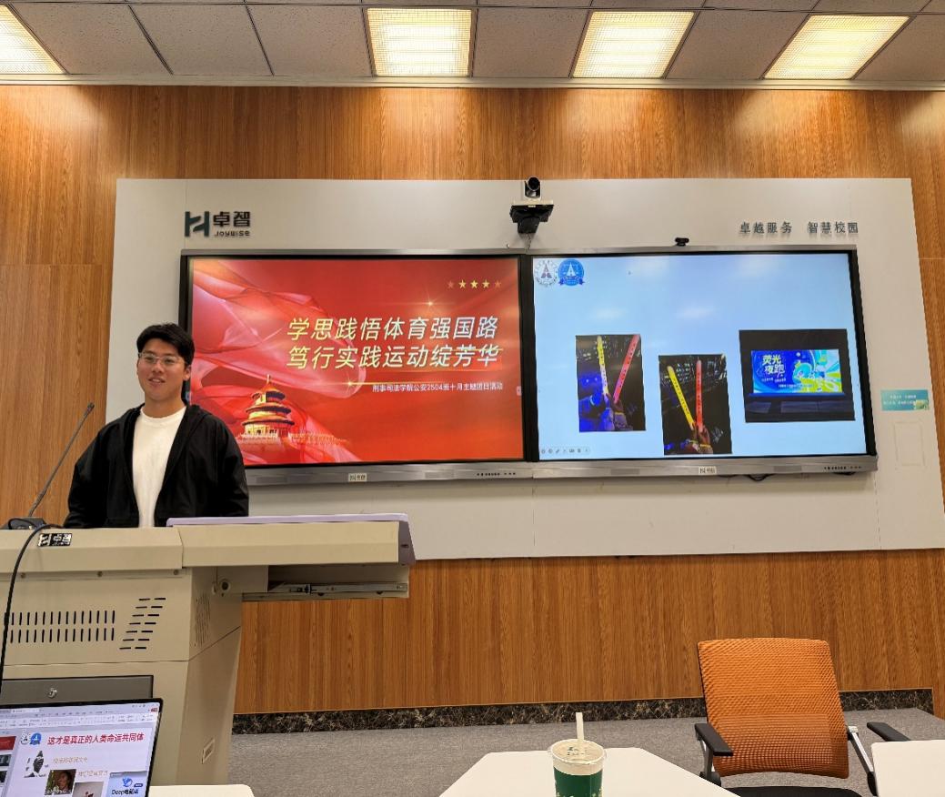 活动最后,文体委员杨泽同号召全体团员将体育精神融入日常,以强健的体魄、坚毅的意志投身学习与生活,在体育实践中锤炼品格、凝聚班级向心力,以实际行动践行体育强国建设的青年担当。