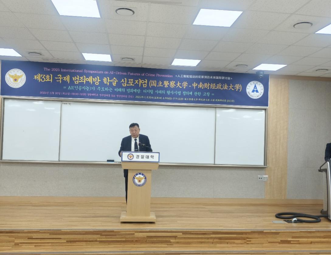 (李正新 刘心兰)11月20—21日,应韩国国立警察大学、韩国国立海洋大学联合邀请,中南财经政法大学刑事司法学院代表团赴韩参加“人工智能驱动的犯罪预防未来:共塑数字时代的明日正义”国际学术研讨会及“网络犯罪与数字取证国际学术会议”。我校原副校长闫平教授,刑事司法学院院长董邦俊教授,刑事司法学院李正新副教授,法与经济学院硕士研究生刘心兰一行四人全程参会,并与韩方高校就师资互聘、博士联合培养等议题达成深度合作共识。参会嘉宾还包括:韩国成均馆大学、庆南大学、尚志大学的学者,来自安哥拉、卢旺达等国的专家,以及三逸普华永道数字取证技术团队等实务部门的代表。