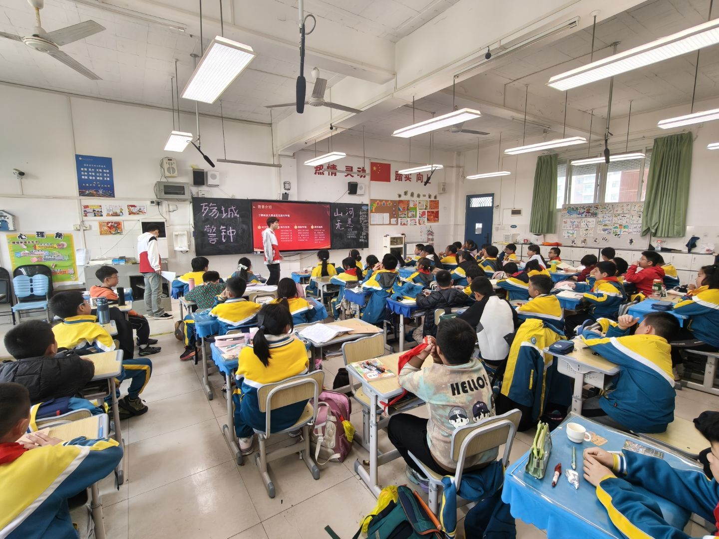 新闻网讯(学生通讯员 陈诗睿)为铭记民族过往、弘扬爱国主义精神,引导青少年珍视和平、砥砺奋进之志,12月11日,中南财经政法大学刑事司法学院星火志愿服务队赴武汉市光谷第五小学,开展以“铭记过往警钟鸣,珍爱和平向未来”为主题的爱国主义教育宣讲活动。活动通过史料讲解、互动问答、英雄故事讲述等形式,围绕相关历史事实、证据与和平意义展开,为小学生们上了一堂深刻而庄重的历史教育课。
