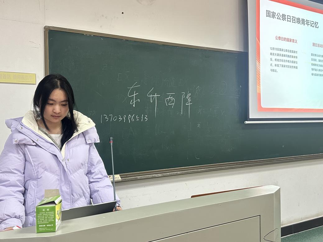 新闻网讯(学生通讯员 陈缇娜)为缅怀历史中的遇难同胞,传承先辈的坚韧精神,培育青年学子的历史责任感与和平意识,引导大家铭记过往、珍视和平、砥砺前行,12月15日,治安2401团支部以“忆往昔以明初心,守和平以践前行”为主题开展了团日活动。