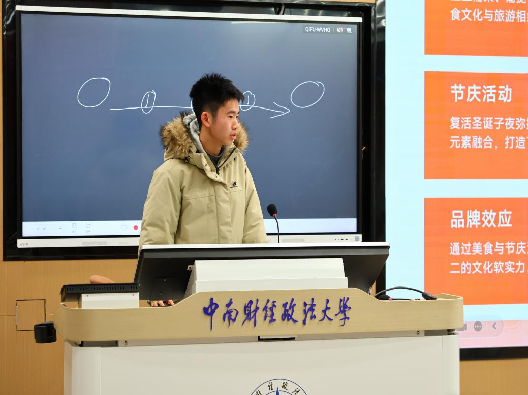 影像播放结束后,团支书围绕“一国两制”方针进行了系统讲解。从构想的提出到在澳门的成功实践,从经济的繁荣发展到社会的和谐稳定,详尽阐述了“一国两制”为澳门长治久安和持续发展提供的根本制度保障,使同学们深刻认识到这一方针的远见卓识与强大生命力。在随后的知识问答环节,同学们踊跃参与,积极抢答,在互动交流中进一步加深了对澳门相关知识的了解。