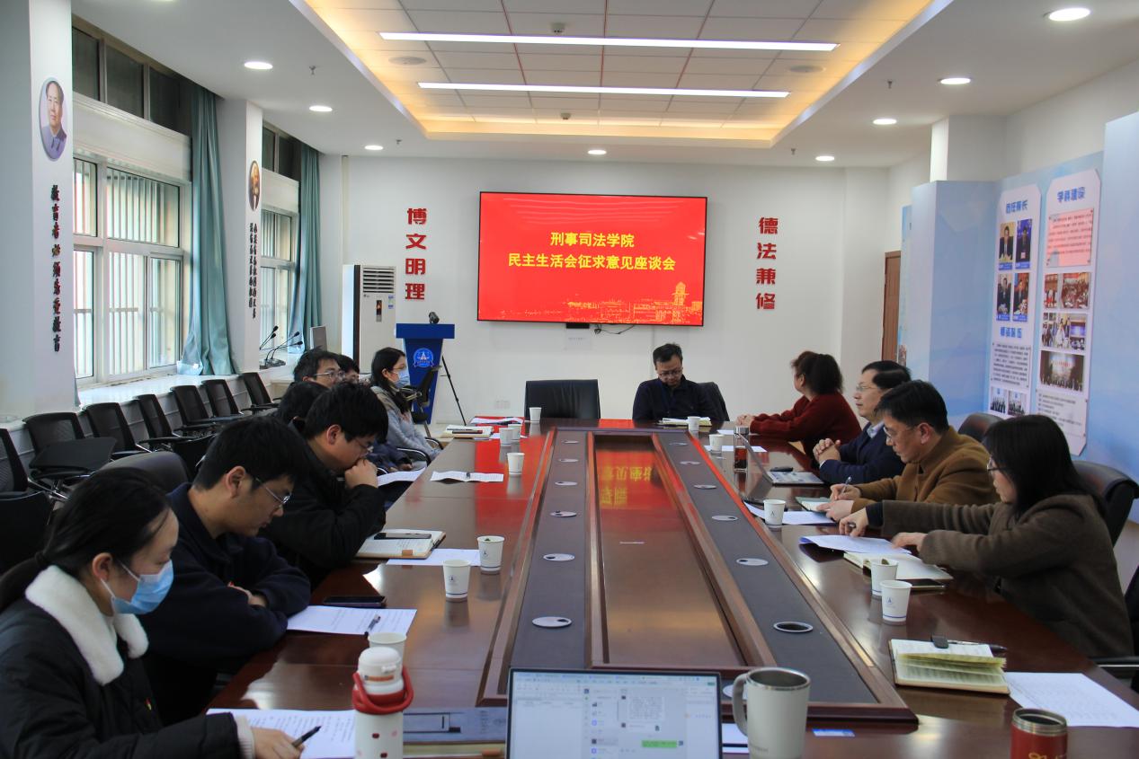 2026年1月13日下午,刑事司法学院党委在文治楼二楼会议室召开2025年度党支部书记抓党建工作现场述职评议会暨学院民主生活会征求意见座谈会。学院党委委员、基层党建工作联络员、专职组织员及全体师生党支部书记参会,会议由学院党委书记张志刚主持。