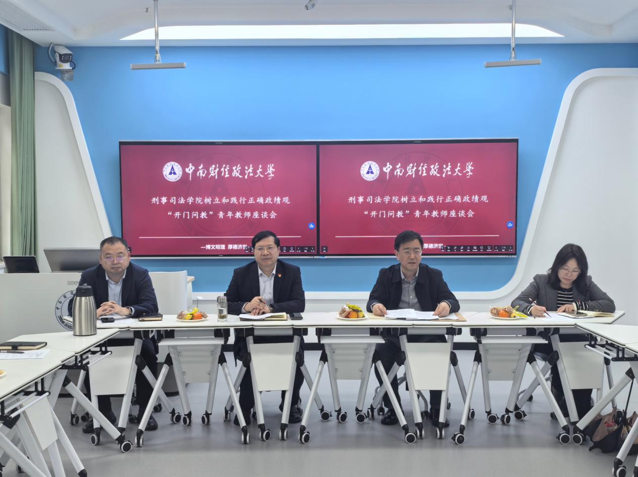 新闻网讯(通讯员袁莉)为深入学习贯彻习近平总书记关于树立和践行正确政绩观的重要论述,坚守“开门办教育”理念,切实把“以师生为中心”的发展理念落到实处,4月9日,刑事司法学院召开树立和践行正确政绩观“开门问教”系列座谈——青年骨干教师座谈会。学院领导班子成员、10余名青年骨干教师代表及各业务科室负责人齐聚一堂,共商发展大计、破解成长难题,以务实作风践行正确政绩观,以真心实意回应教师关切,以开门纳谏之举夯实育人根基。